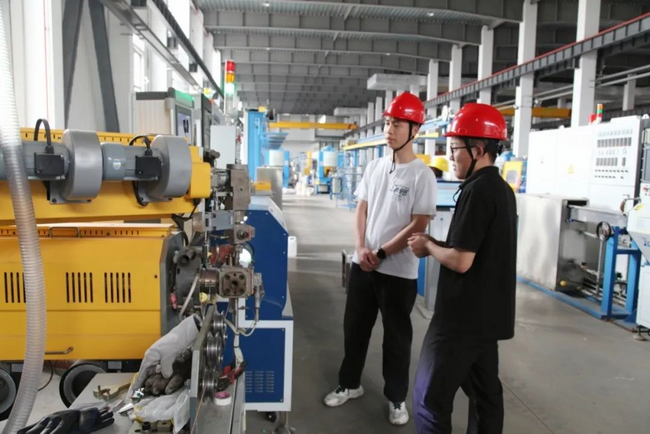 Workshop practice is the core link of this internship training. The company has provided each group of students with exclusive practice tutors. In the bare wire intelligent branch factory, the students experienced the operation of the world's leading intelligent wire drawing equipment and witnessed the magical transformation from copper rod to conductor; The high-energy electron accelerator of the irradiation intelligent branch opened students' eyes and deeply understood the essence of the special process of irradiation crosslinking; In the special intelligent branch, the students observed the whole process of intelligent management from order placement to product delivery in real time through the 5g+industrial Internet platform, and experienced how digital twin technology can enable the transformation and upgrading of traditional manufacturing industry.